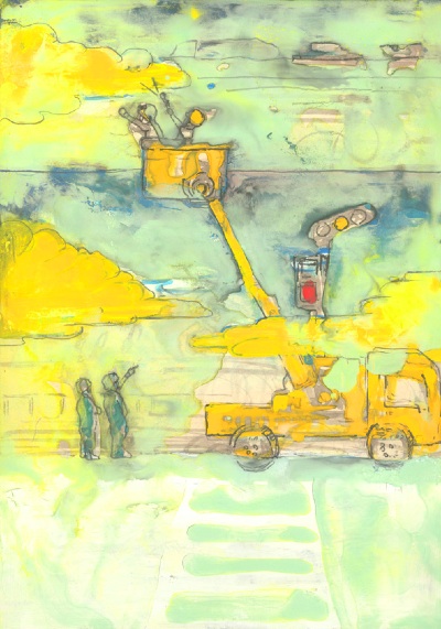 midnight. Checkers are seeing the skyway in the beam of flashlights, as if they're in mischief.