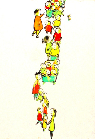 私は会社に出勤途中、よく、すてきなお散歩に 出くわす。 手押し車にのった赤ちゃんたち。 「きみたち(赤ちゃんたち)にはなにが見える?」